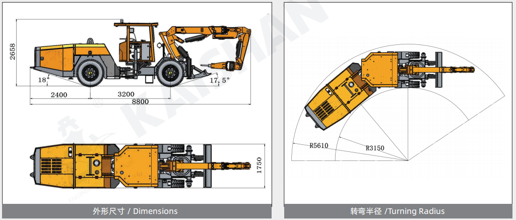 Driven by diesel engine; Suitable for scaling operations in tunnels and non coal mine hill and various underground projects.