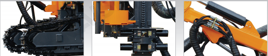 • Equipped with the automatic rod handling system, drill pipe lubrication module drill pipe sticking prevention system, hydraulic dry dust collection system, etc.